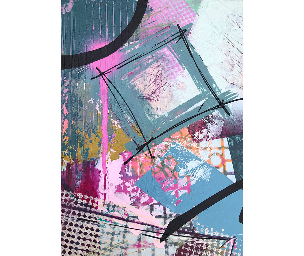 Heavily textured original acrylic painting on board. Framed in a deep, contemporary white wood frame.